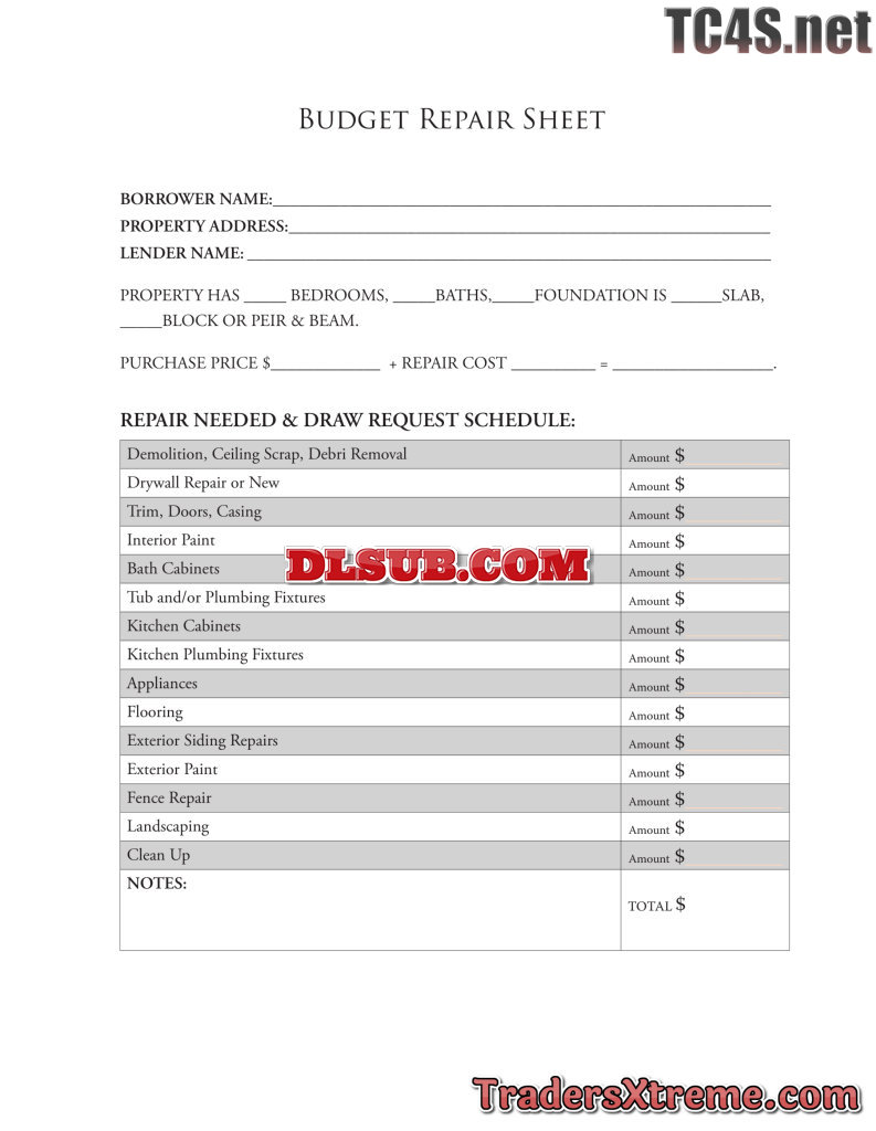 Budgetrepairsheet - JPG Image File