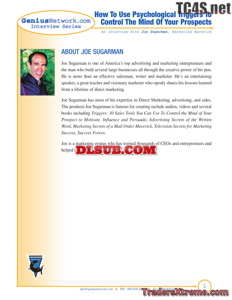 Genius Network Joe Sugarman Interviewed By Joe Polish - JPG Image File