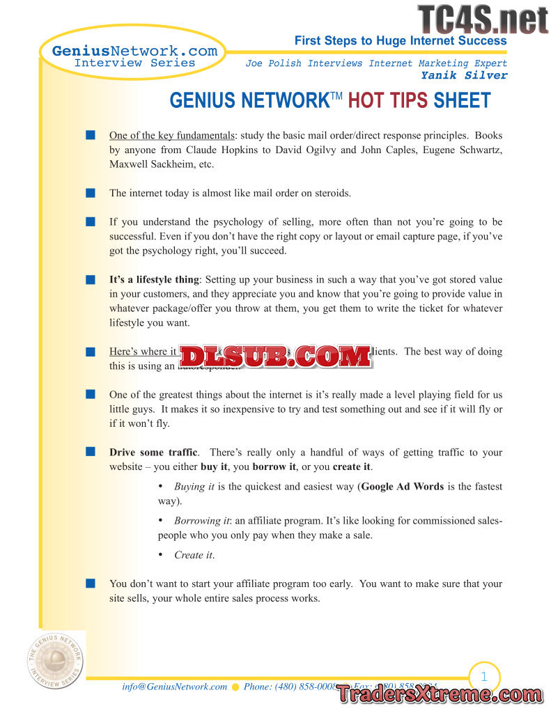 Genius Network Yaniksilver Hottipssheet - JPG Image File