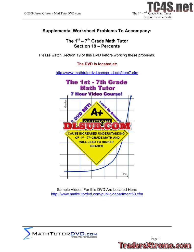 01 1st 7th Grade Math Tutor Companion Worksheet Cd