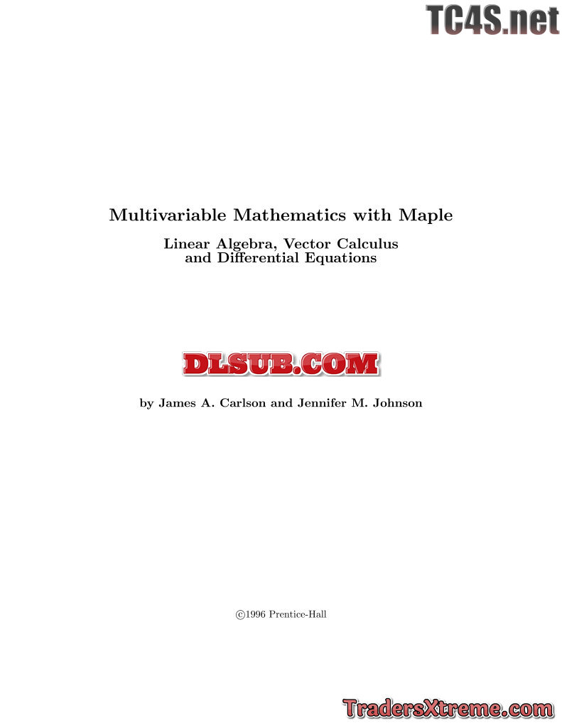 James A Carlson Jennifer N Johnson Multivariable Mathematics With Maple - JPG Image File