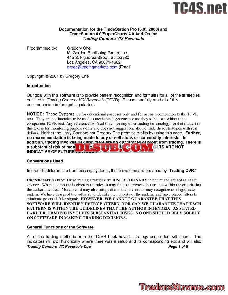 Larry Connors Trading Connors Vix Reversals And Tradestation Files Usd 100