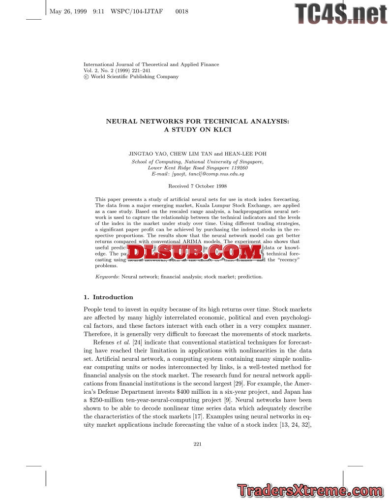 Yao Tan And Poh Neural Networks For Technical Analysis - JPG Image File